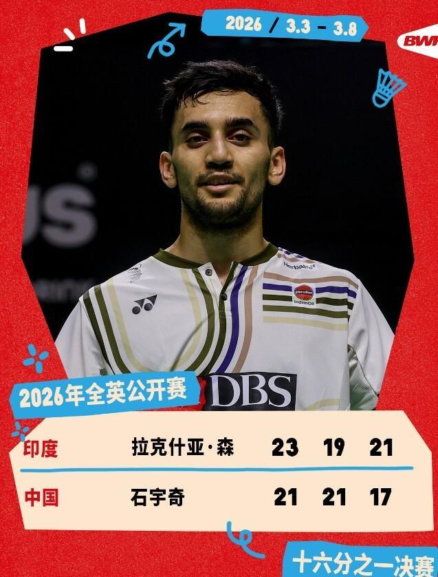 3月3日,世界羽联超级1000赛全英羽毛球公开赛首轮比赛开打。在男单赛场的一场较量当中,赛会头号种子石宇奇同印度选手拉克什亚交手。本场比赛爆出大冷门,石宇奇苦战3局1-2遭到了对手淘汰,遗憾止步首轮。