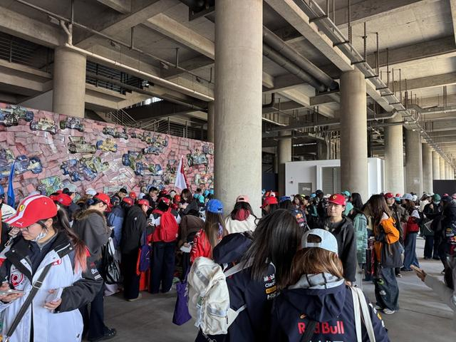 在场外等待体验儿童卡丁车的队伍中,8岁的小张穿着红牛队服,俨然一名小小赛车手。这已经是他第二年来观赛。自去年亲临现场后,小张便被赛车的速度与激情所吸引,今年主动向爸爸提出想再来“看看今年的新车”,更期待近距离支持偶像维斯塔潘。